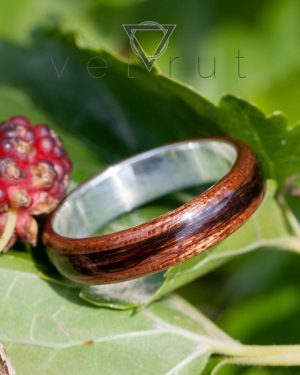 Gitar Teli, Tektaş ve Gümüş Astarlı Sarma Ahşap Yüzük