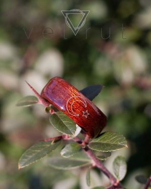 Havlit tozu ile Ay Yıldız Türk Bayrağı işlemeli sarma ahşap yüzük.