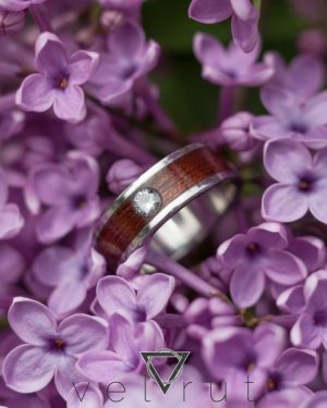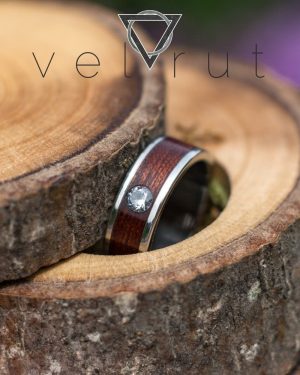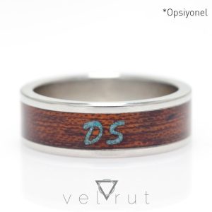 Paslanmaz çelik çerçeveli ve tektaşlı sarma ahşap yüzük.