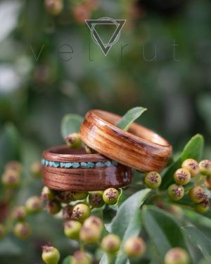 Kenarlı Yeşil Firuze/Turkuaz taş dizili sarma ahşap yüzük.