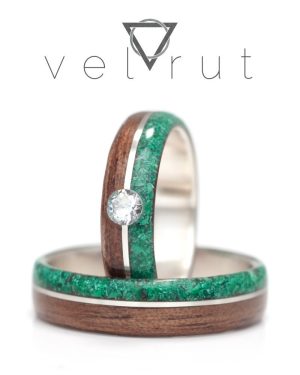 Gümüş astarlı, tam kenarlı turkuaz tozu ve bitişik gümüş şeritli sarma ahşap yüzük.