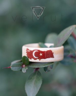 Türkiye Haritası ve Ay Yıldız İşlemeli Sarma Ahşap Yüzük